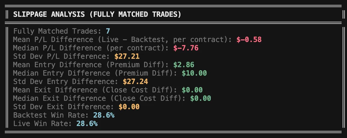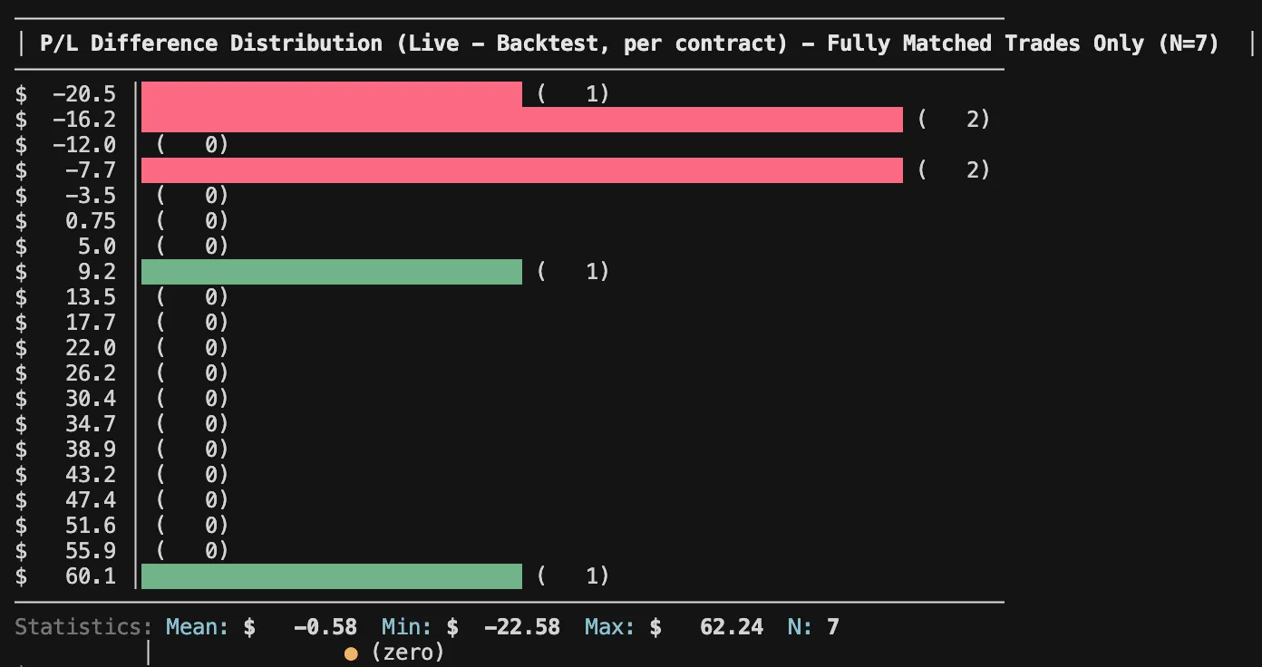 To trust that the backtest reflects real-life behavior, we first need to confirm that live execution aligns with it over the period I was trading live. That alignment is what makes any long-term profitability assumption more credible.