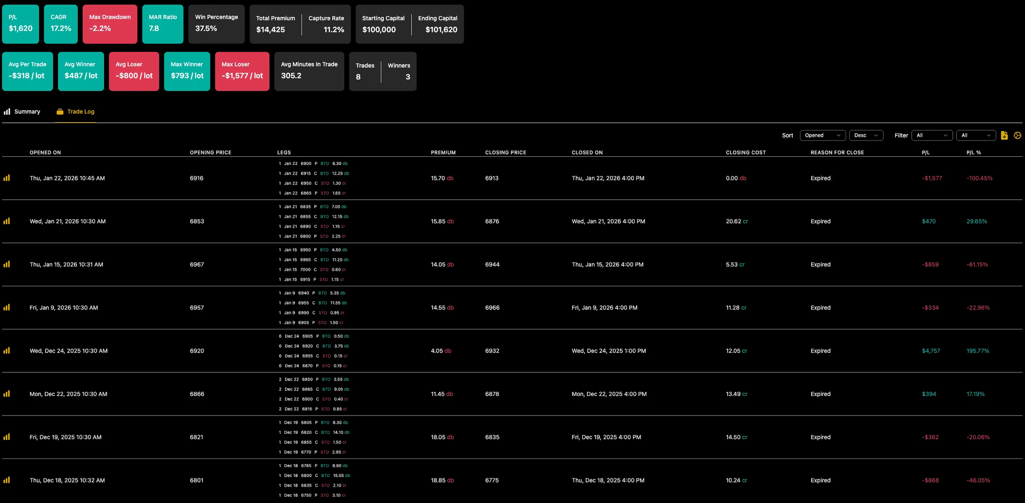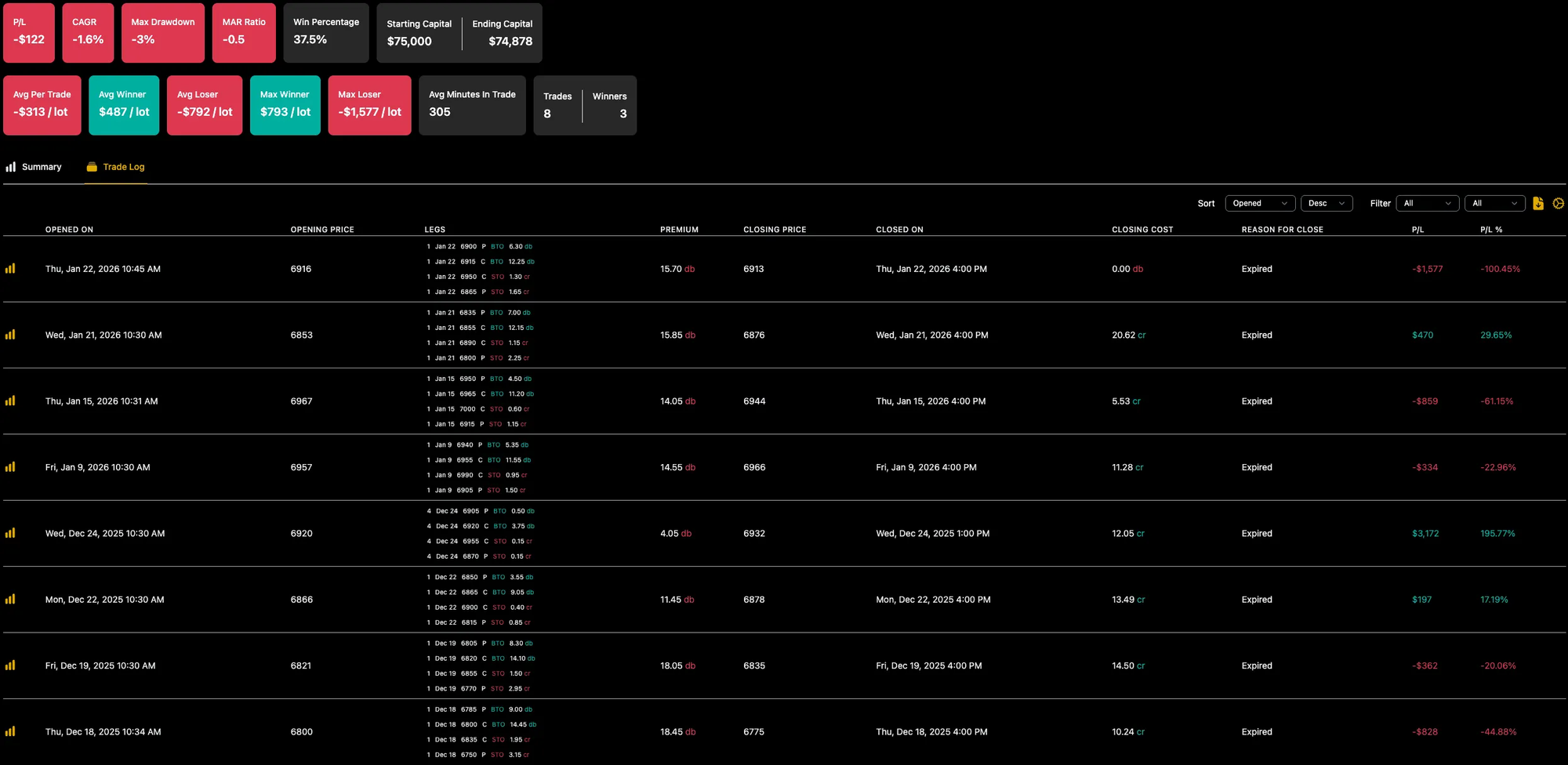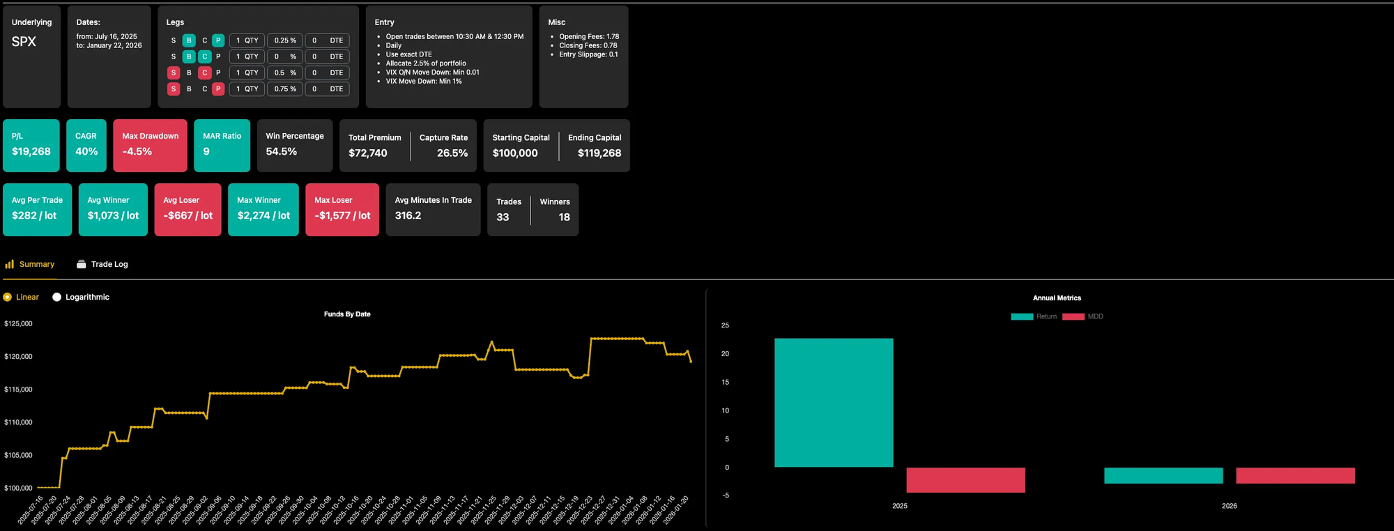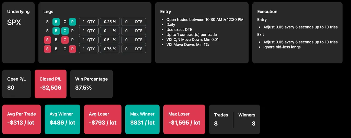 Before running the 1-lot backtest, I accidentally left the original 2.5% sizing on a $100K portfolio.